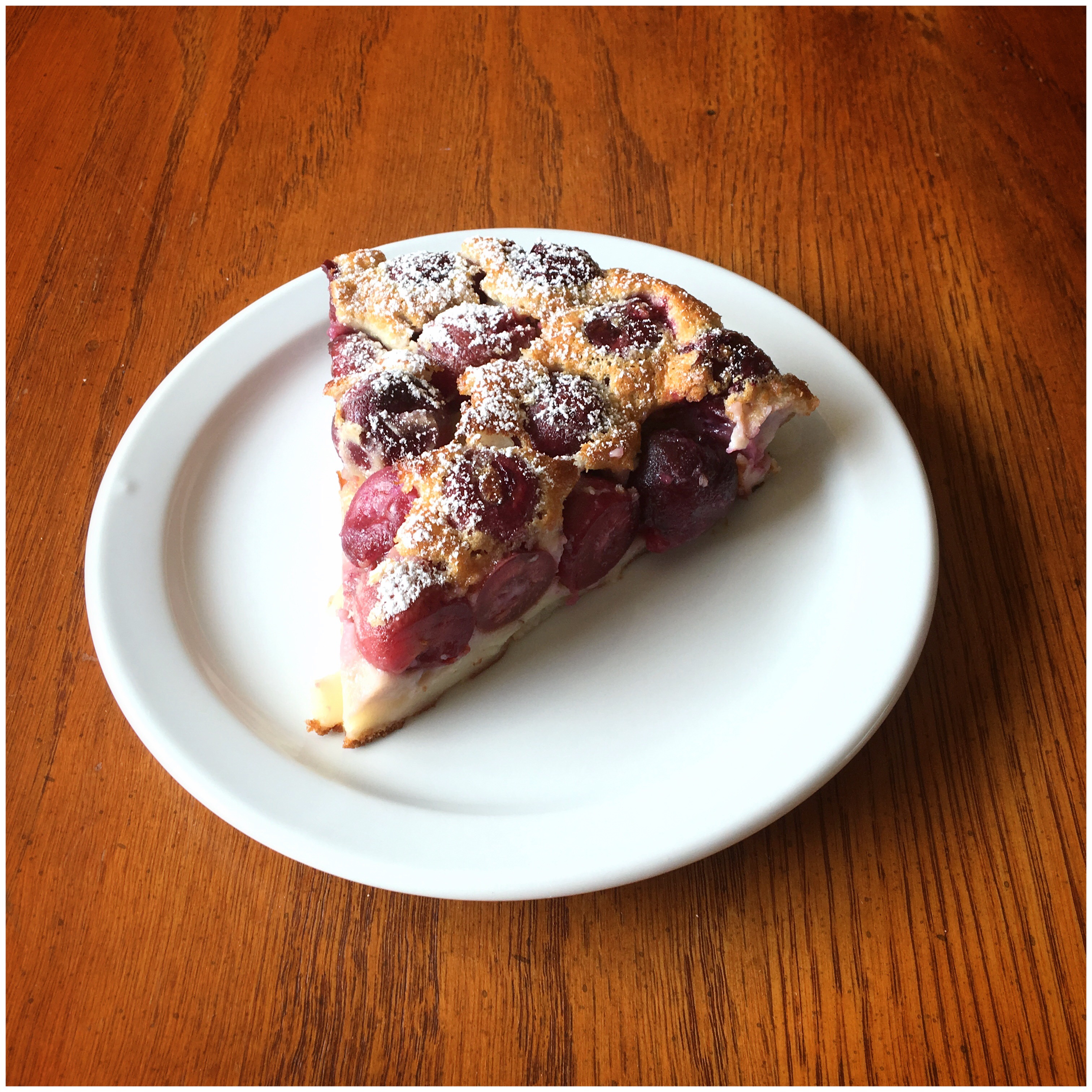 Sunday on a long weekend. That day in the middle that is kind of non-descript. Aside from church, it is a perfect day for trying new things like that recipe for Cherry Clafoutis that looked so delicious and so impossible to do. Well guess what, on a long weekend it is not impossible and it is delicious.